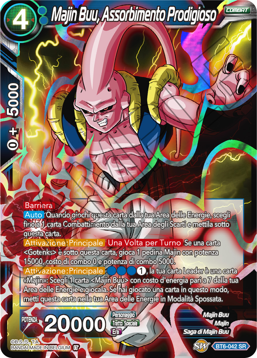 Attivazione: Principale Una Volta per Turno Se una carta 〈Gotenks〉 è sotto questa carta, gioca 1 pedina Majin con potenza 15000, costo di combo 0 e potenza di combo 5000.