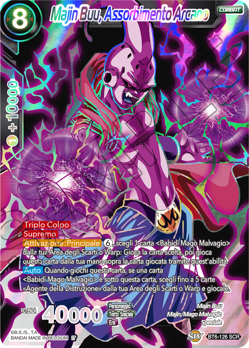 Auto Quando giochi questa carta, se una carta 〈Babidi Mago Malvagio〉 è sotto questa carta, scegli fino a 5 carte 《Agente della Distruzione》 dalla tua Area degli Scarti o Warp e giocale.